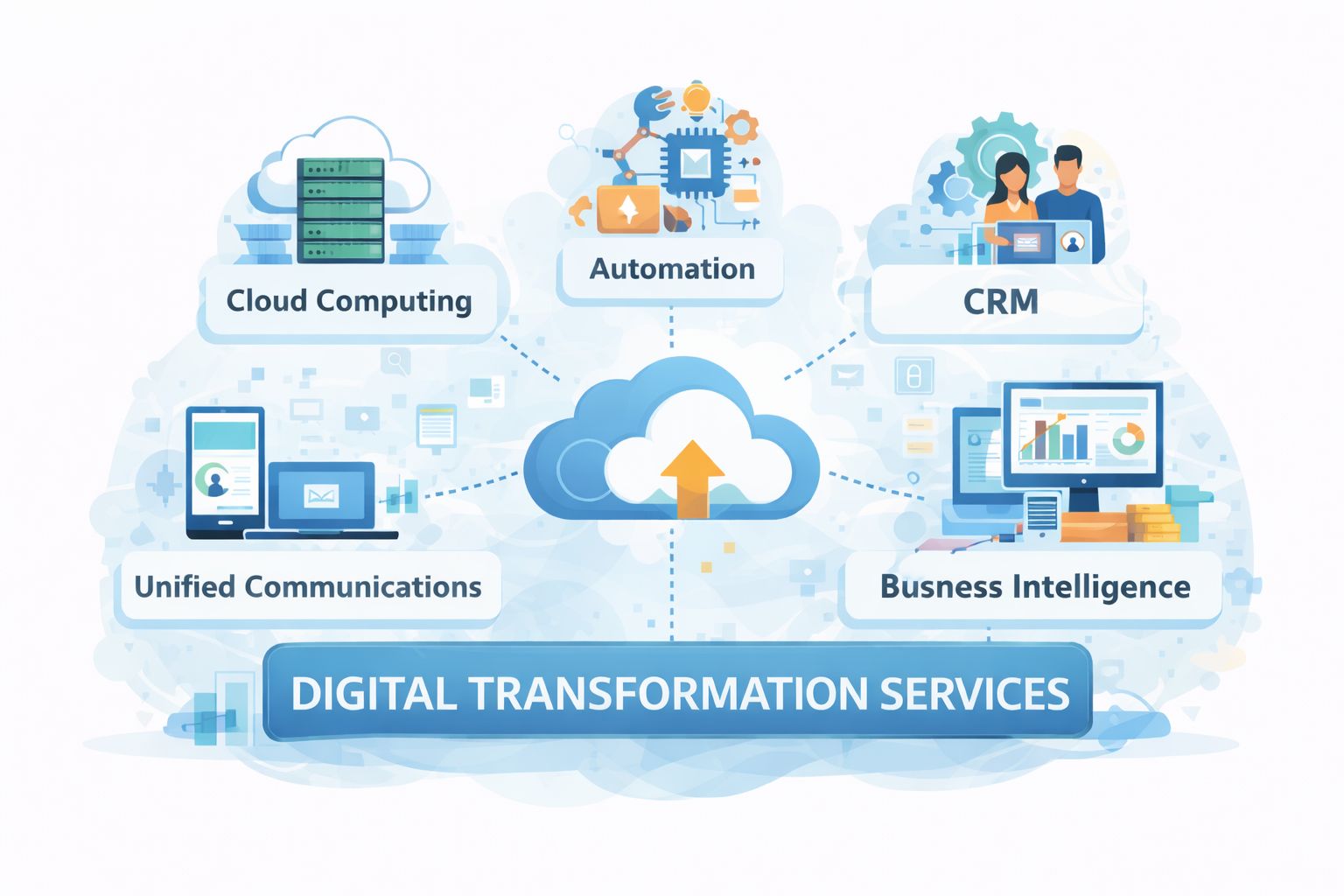 Digital transformation for small businesses involves integrating technologies such as cloud computing, automation platforms, customer relationship management systems, and data analytics into everyday workflows. These solutions help organizations centralize information, automate repetitive processes, and improve collaboration across teams.