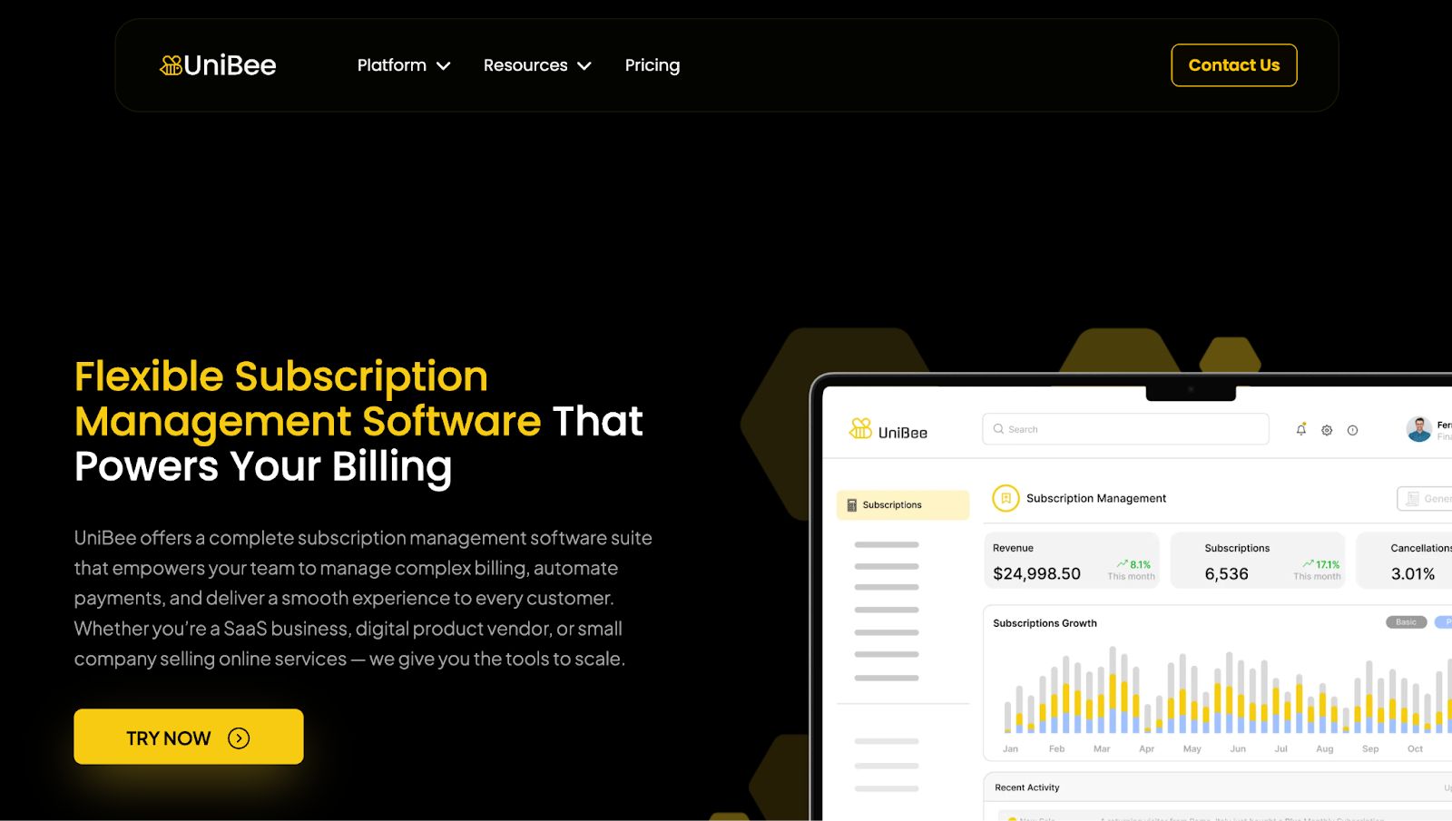 UniBee points out its flexibility and control, especially for growing SaaS and digital businesses. The design is for teams that want to automate recurring billing without tight ownership, transparency, or the ability to tailor the system to their exact needs.